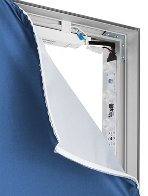This double sided 4" inch deep profile is specially designed to illuminate large size textile prints with side lighting. Even illumination is provided by BFF's Ultra-LEDs mounted to the inside channel of the frame. This solid freestanding or suspended frame is perfect for use as a partition wall in a showroom or as a feature in a retail window display facing the street outside, as well as patrons inside the store. Catch attention and maximize visual impressions with BFF lightboxes!